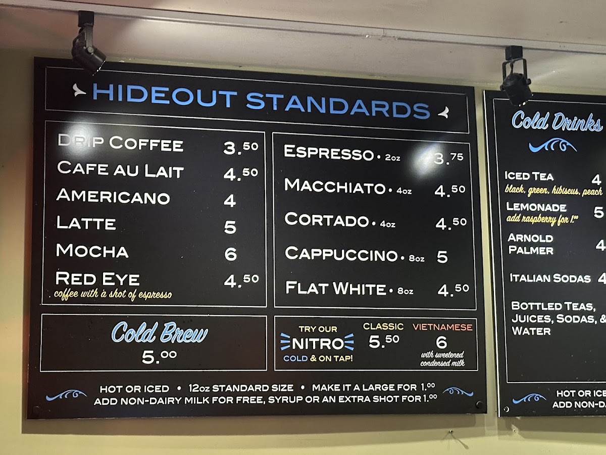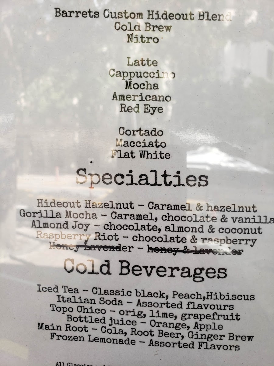 The Hideout Coffee House Menu